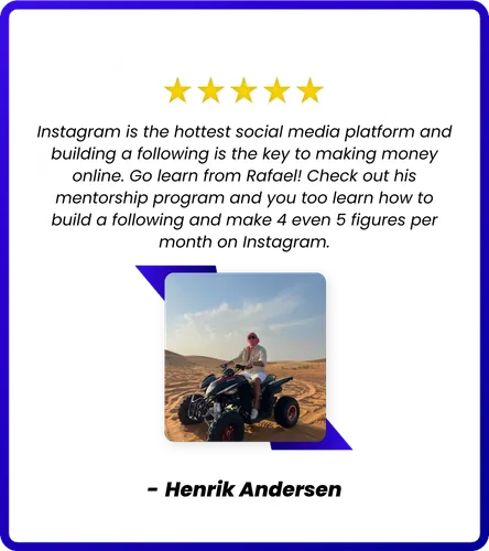 "Instagram Academy has dramatically helped me out in this Instagram business and Instagram growth area. I literally got the 143,000 follower in the last 12 month. And I literally woke up today and I'm up $1,000 ! "
